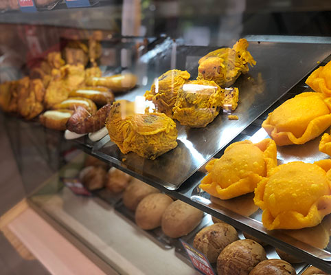 Los mejores chicharrones rellenos de dulce de guayaba, pandebonos y muchos más productos de panadería y bollería perfectos para tu desayuno o merienda.